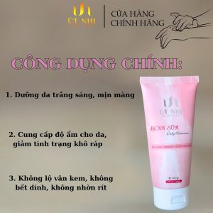 Bước 1: Lấy 1 lượng Kem Body Út Nhị vừa đủ, chấm từng điểm trên cơ thể và thoa đều đến khi kem thẩm thấu hết vào da